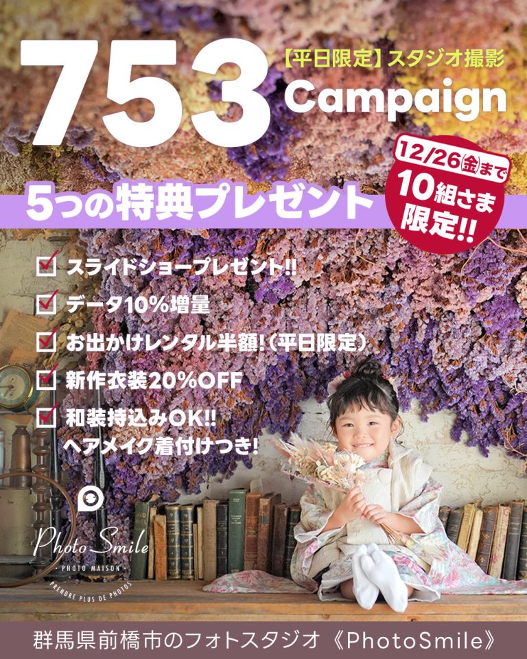 【12/26(金)までの平日限定!】753撮影は 平日がおトク👍